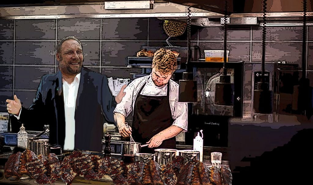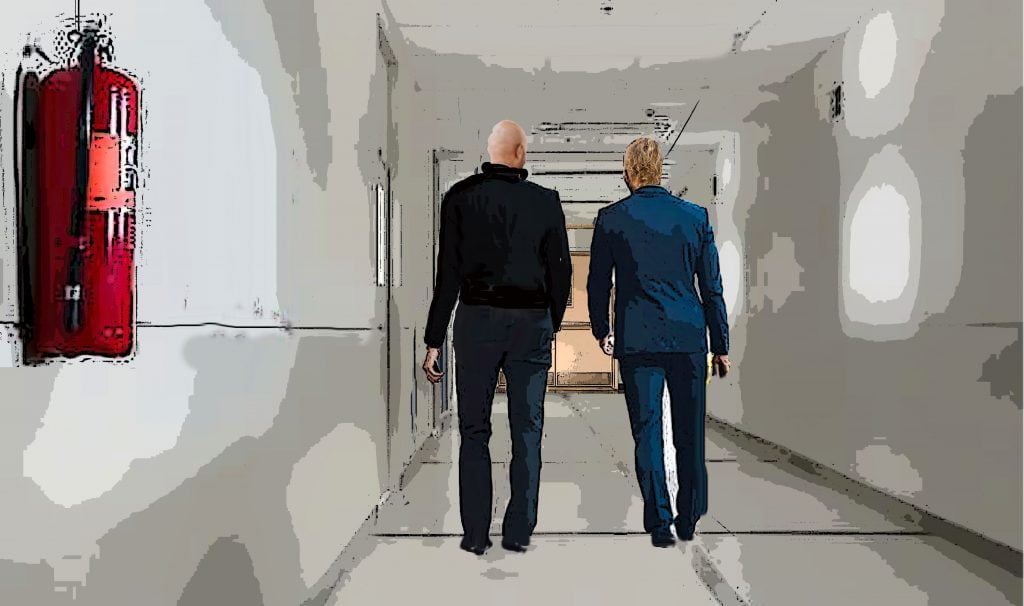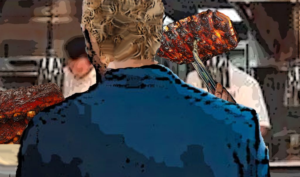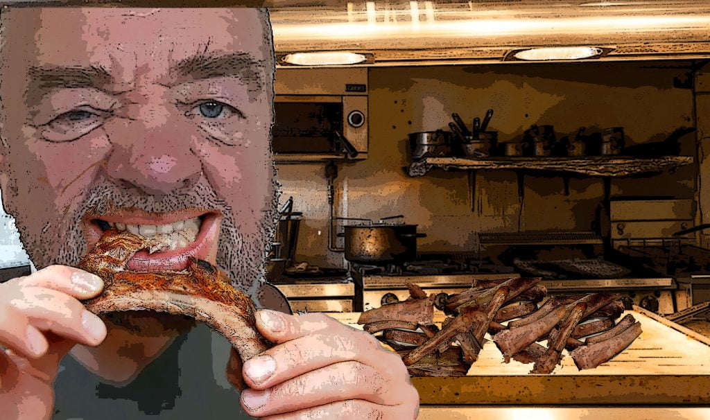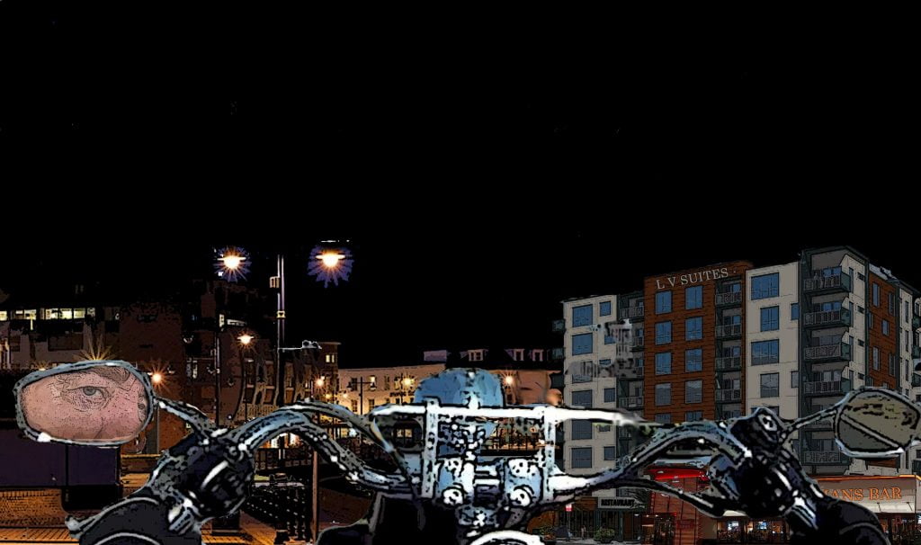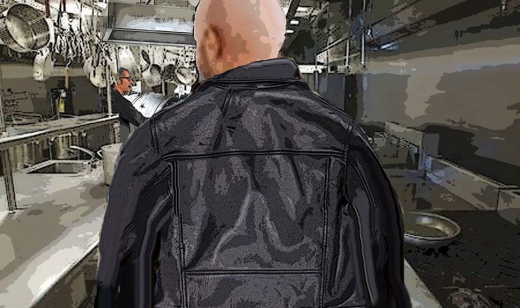 Lou feasts and Don leads Lou to his bike Don Oh, it's barbecue ribs night. Hungry? Lou Strap me on a feed bag Don Step aside son, our guest deserves a good meal. Here ya go. Don Your bike should be right outside that door. Just ride around the back and into the underground parking, where you can take the freight elevator up. Next scene: Lou rides up elevator and meets Don
